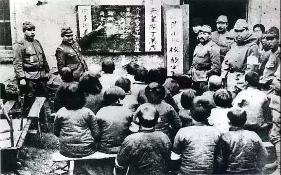 ▲在濟南的日軍,教淪陷區(qū)的孩子學習日語